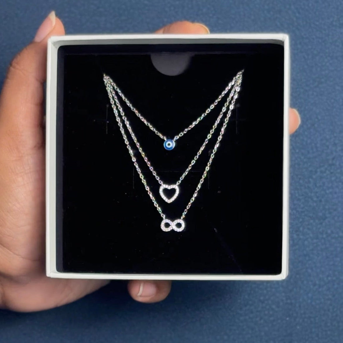 A blend of style, protection, and meaning — this elegant Three-in-One Evil Eye Chain Pendant...